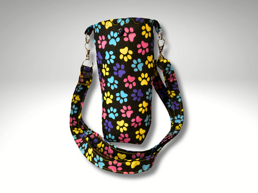 Bottle bag, travel bottle bag, water bottle bag, drinks holder, drinks carrier, holiday bag, dog walking bag, across body bag, Paws