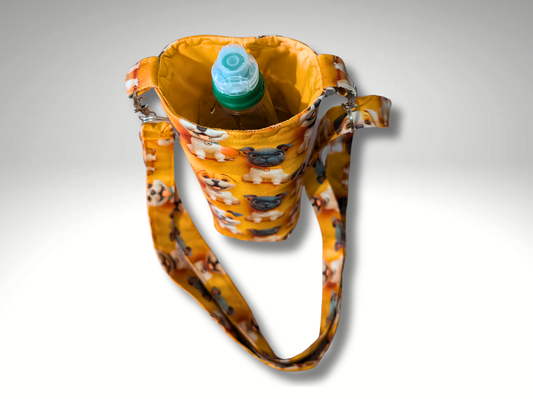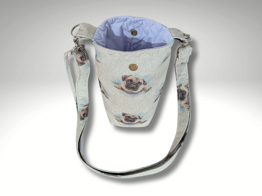Bottle bag, travel bottle bag, water bottle bag, hiking bag, Pug dog walking bag, across body bag