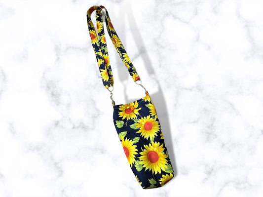 Bottle bag, travel bottle bag, water bottle bag, hiking bag, dog walking bag, across body bag, Sunflowers