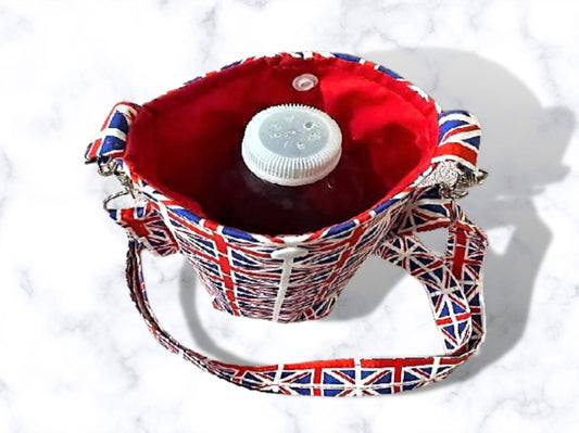 Bottle bag, travel bottle bag, Coronation decor, Kings Coronation gifts, water bottle bag, dog walking bag, across body bag, Union Jack
