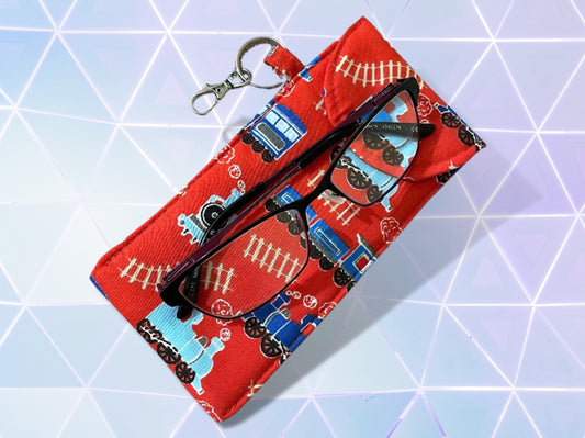 Childrens glasses case, kids sunglasses case, trains, soft padded glasses case, soft pouch, sunglasses case